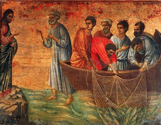 Duccio di Buonisegna (activo en Siena desde 1278; m entre 1318 y 1319): Panel con la Pesca Milagrosa, en el dorso de la gran tabla de la “Maestá” (Museo dell’Opera del Duomo, Siena)